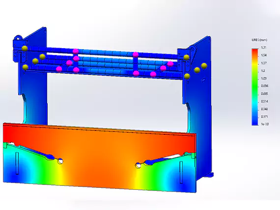 Finite-Elemente-Analyse (HÄSSLICH) wird in unserer Abkantpressenkonstruktion eingesetzt, um die strukturelle Leistung unter realen Arbeitsbedingungen zu simulieren und zu optimieren. Durch die Analyse der Spannungsverteilung, Verformung, und Belastbarkeit, Wir sorgen dafür, dass der Maschinenrahmen maximale Festigkeit erreicht, Präzision, und Haltbarkeit vor der Produktion.